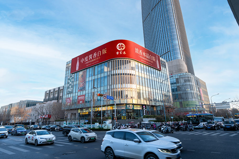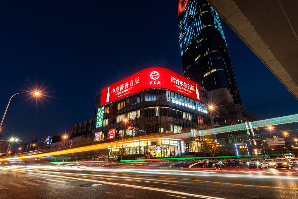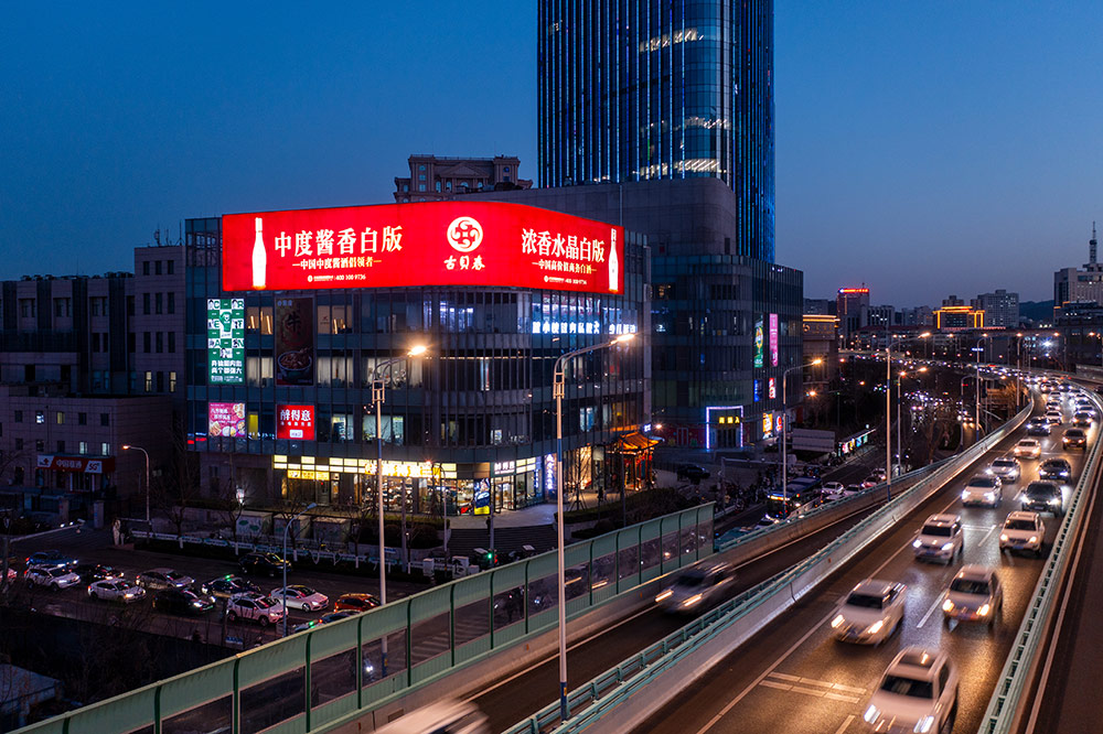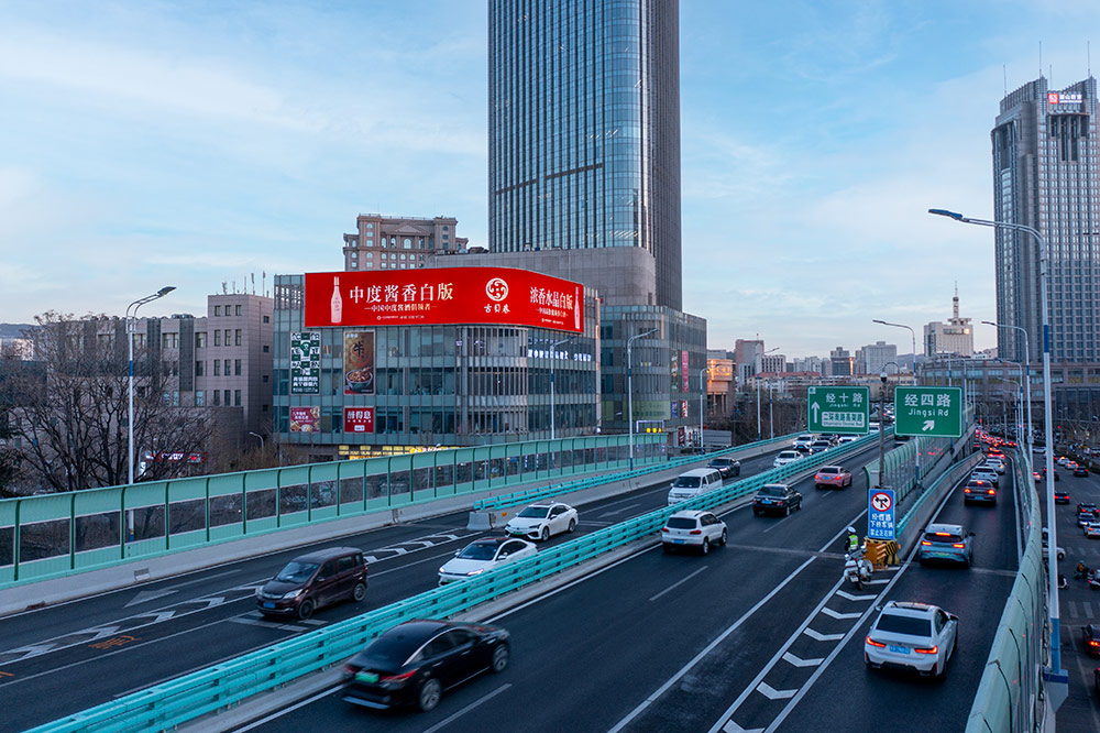 華途傳媒 | 古貝春投放濟南綠地中(zhōng)心(巨幅弧形)戶外燈箱廣告