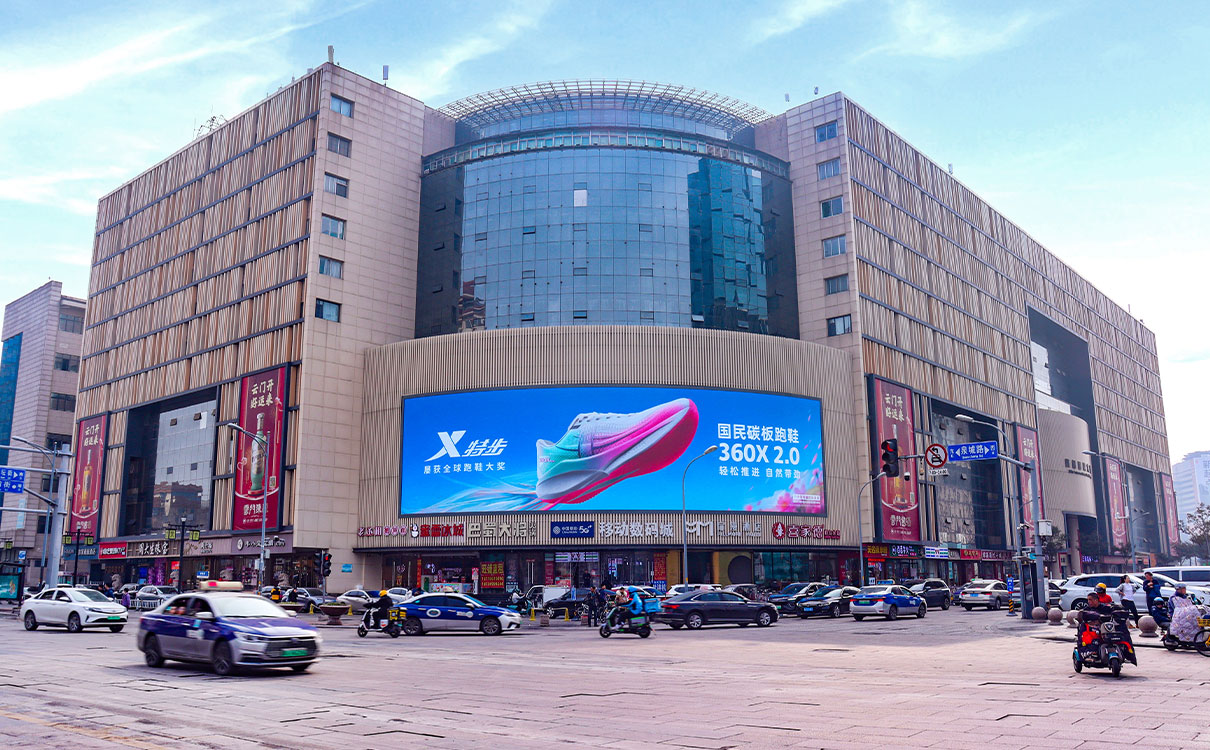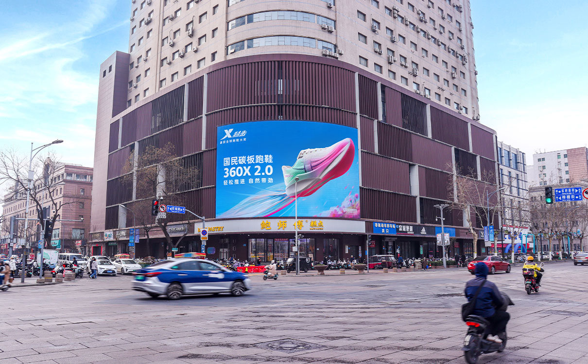 (齊魯國(guó)際大廈戶外LED屏 上刊品牌:特步)